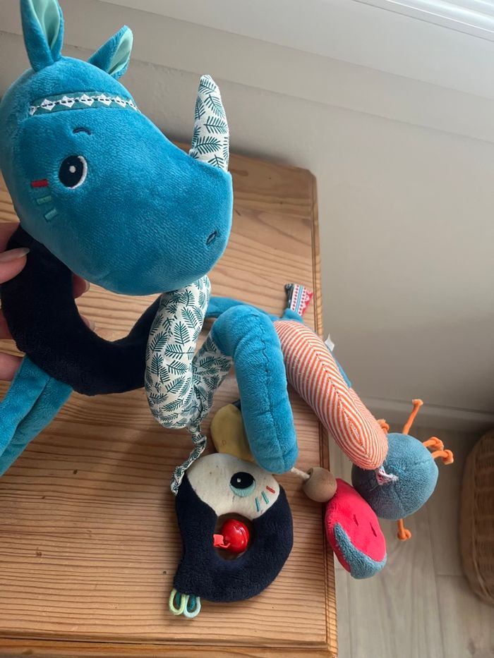 Spirale pour poussette Marque « les liliputiens » Modèle « Marius » Descriptif site marchand: Très pratique, cette spirale d’activités s’enroule facilement autour du parc, du siège pour bébé ou du buggy. Marius le rhinocéros propose un éventail d’activités et de découvertes étonnantes pour les plus petits. Les trajets en voiture ou les balades n’en seront que plus agréables. Valeur 40€