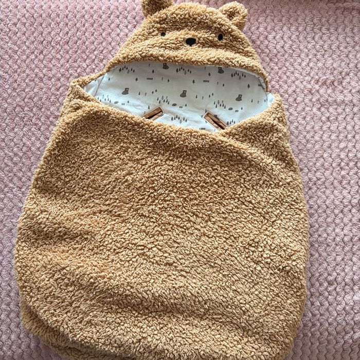 .nid d'ange bébé gaze de coton et polaire savane gris