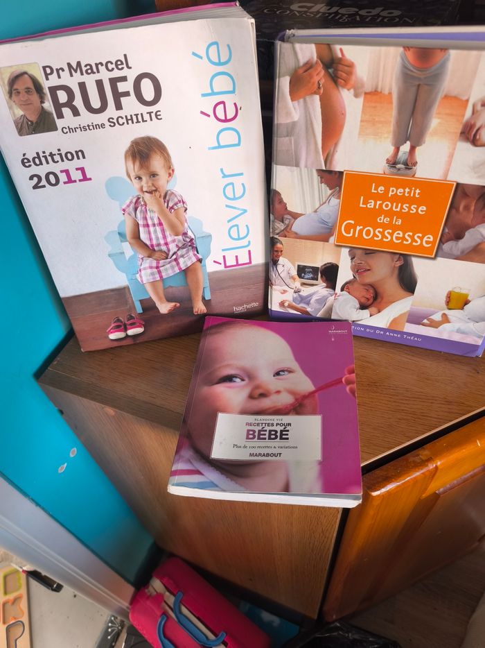 Trois livres en bon état Un sur la grossesse Un sur comprendre son enfant Un livre de recettes pour bébé