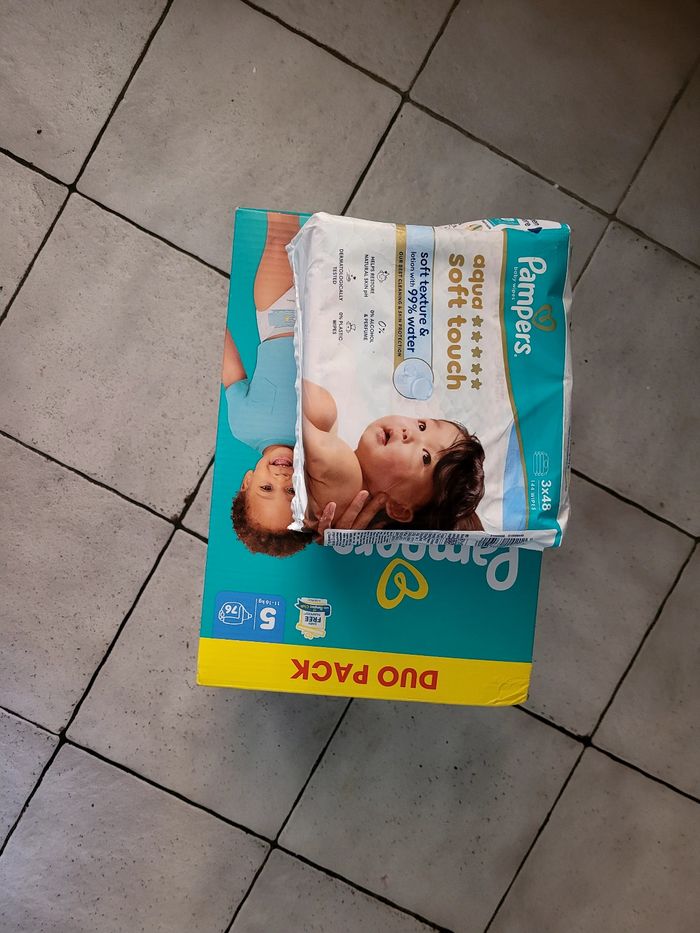 Lot de un carton pampers taille 5 Et 3 paquet de lingette Neuf