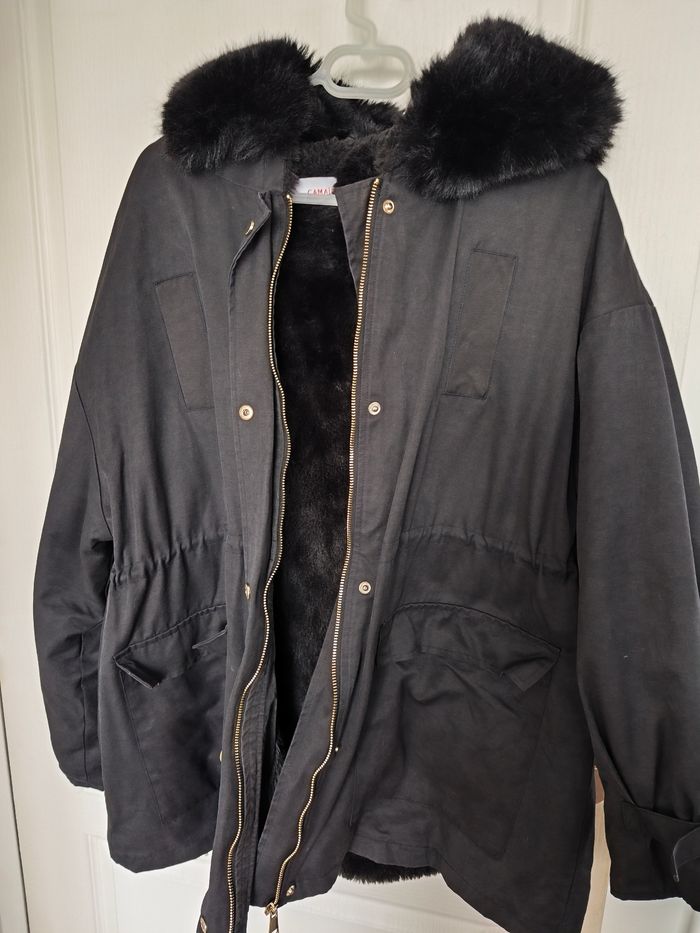 Il taille très bien la fourrure plaid tient bien chaud, vous pouvez ajuster la taille avec une corde inclus dans le manteau.