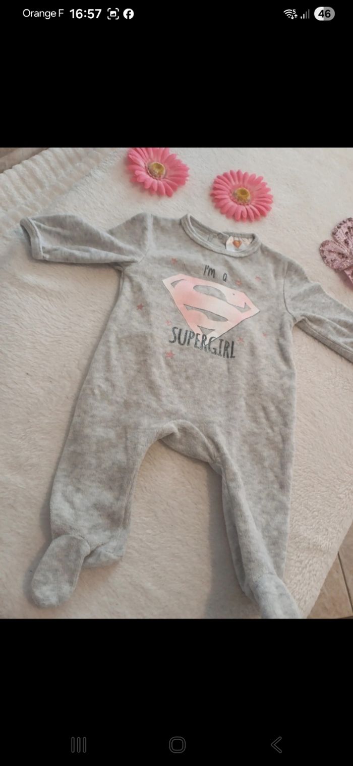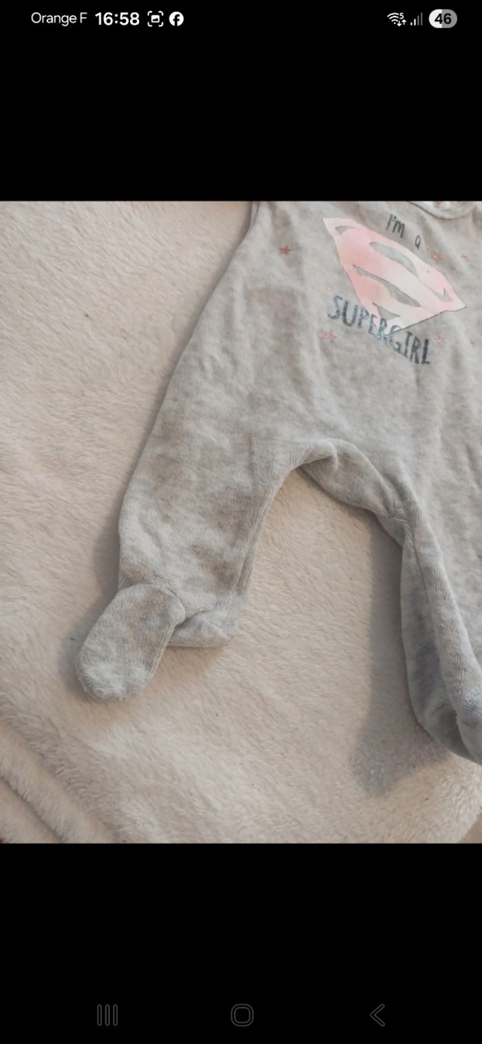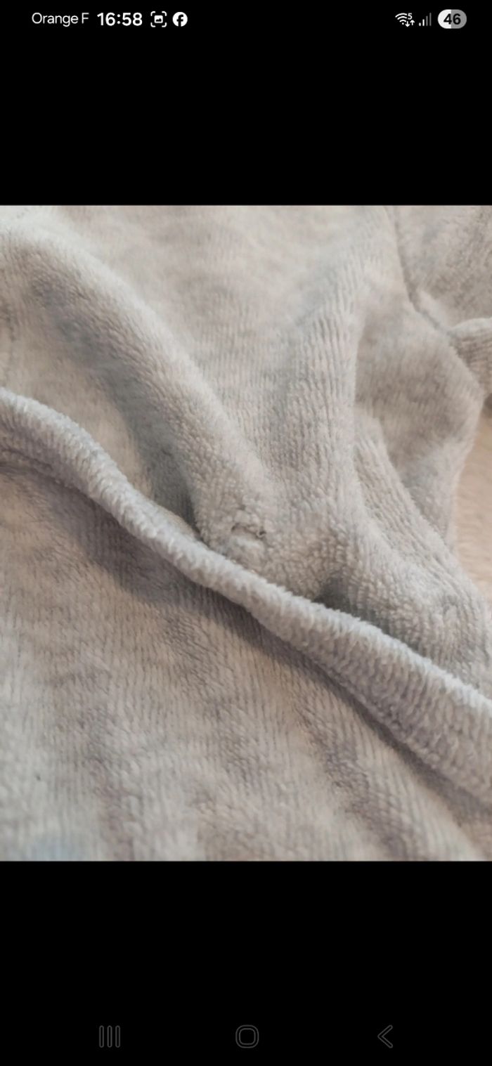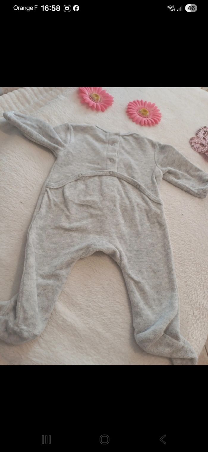 Pyjama en velours avec pieds. Fermeture par pressions à l arrière. Attention les pressions sont fragiles ( voir photo)