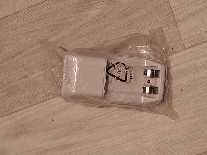 Vends chargeur de piles compact, idéal pour vos appareils du quotidien (manettes de console, jouets, souris sans fil, etc.). - Format : Compatible avec les piles LR06 (AA). - État : Neuf, jamais utilisé (encore sous plastique). - Pratique : Se branche directement sur une prise murale, très peu encombrant. - Sécurité : Témoin lumineux de charge (LED rouge).