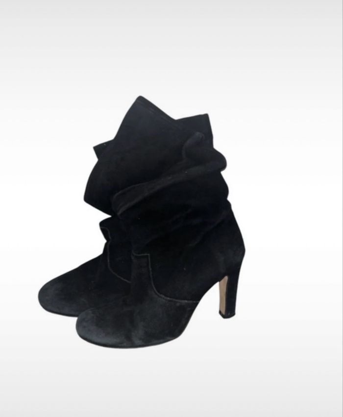Bottes noir velour , tissu plissé Bon état voir photo Hauteur talon 6,5cm #eaguilillafemme #eaguilillachaussure