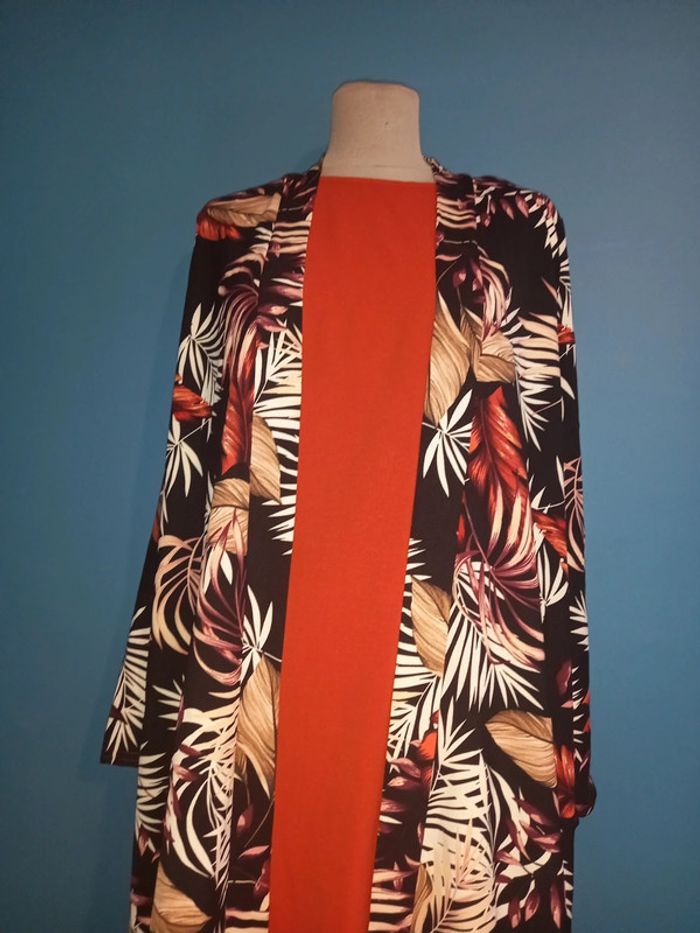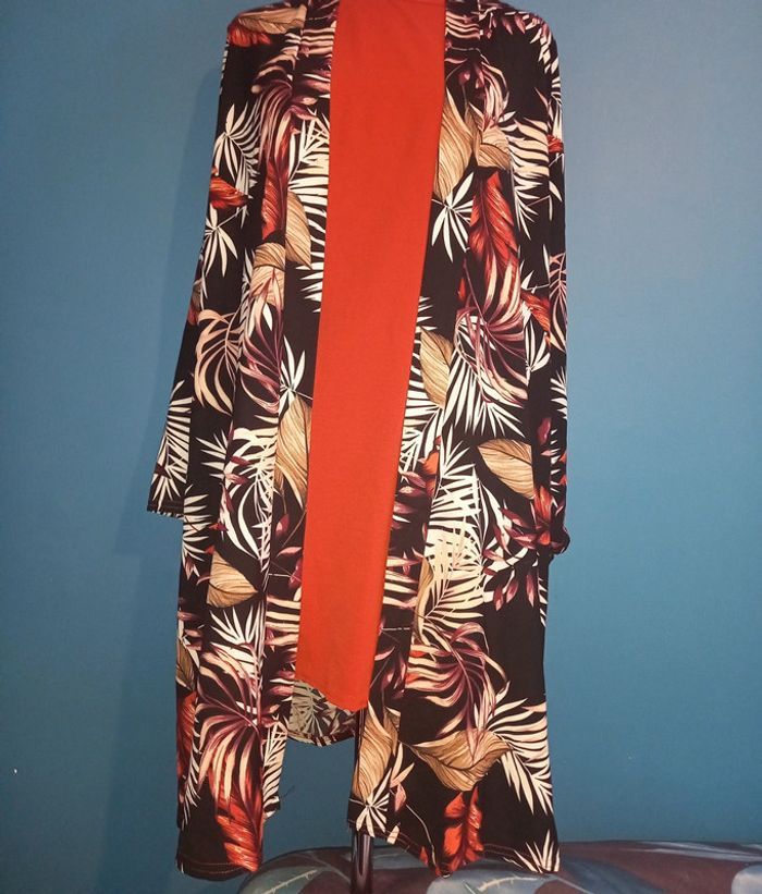 Superbe ensemble chic grande taille Couleur orange brique Peut convenir pour cérémonie ou mariage ! Pantalon large avec taille élastiquée tunique accrochée au kimono ( indissociable) Convient jusqu'au 50 maximum environ ...... Superbe !!!! NEUF !!!!!