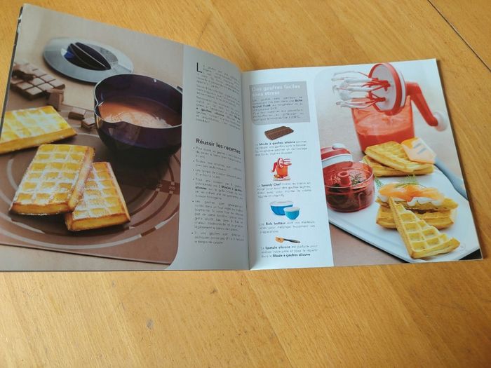 Lot de 3 moules à gaufres silicone Tupperware avec le livre de recettes. Le blanc n'est pas un signe d'usure, c'est la paraffine. Vous pouvez rincer à l'eau froide avant utilisation