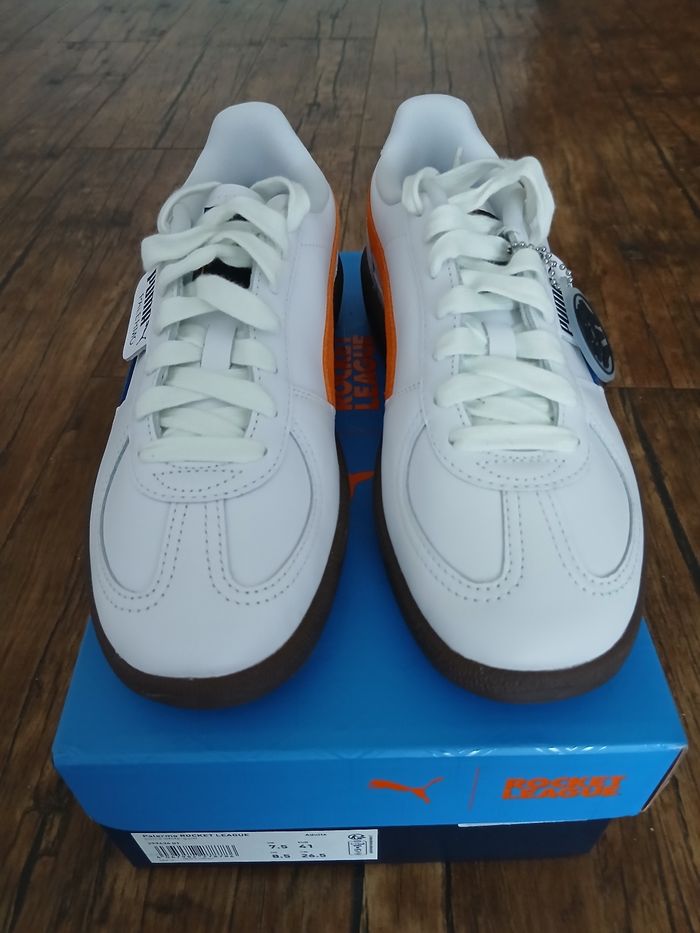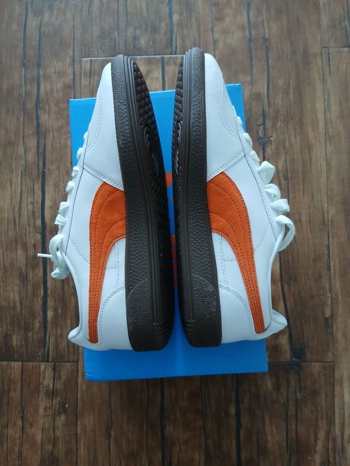 Chaussure Puma en cuir blanc et en daim bleu et orange neuf taille 41.