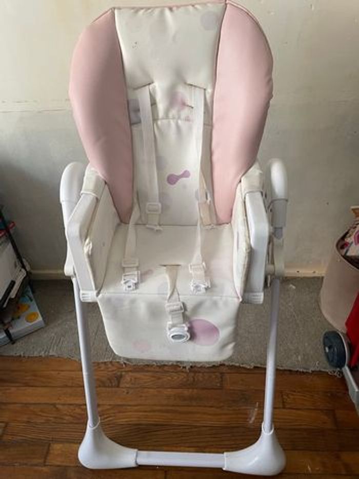 Chaise Haute Enfant Yummy, Pliable, Réglable, Nettoyage Facile, Rose, 103 x 59 x 83 cm.