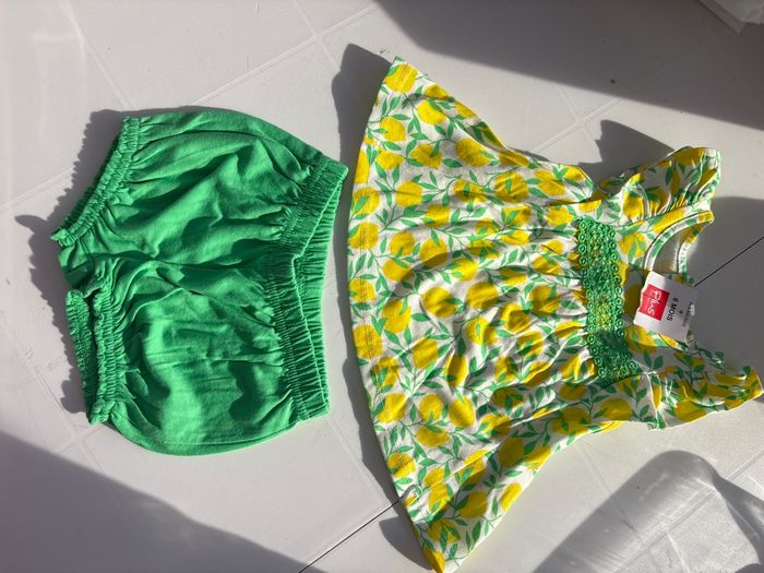 Ensemble salopette + + tee-shirt + gilet été fille 18M