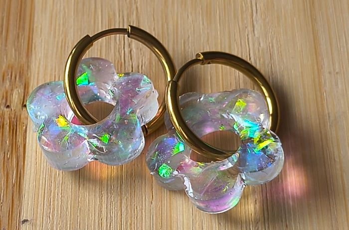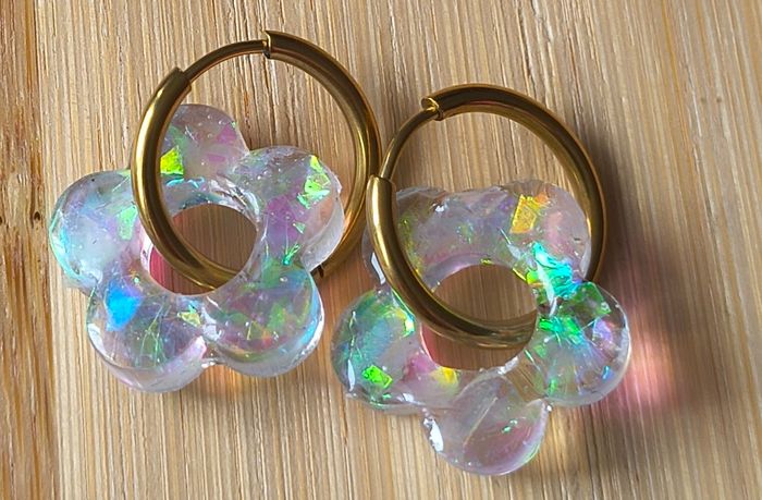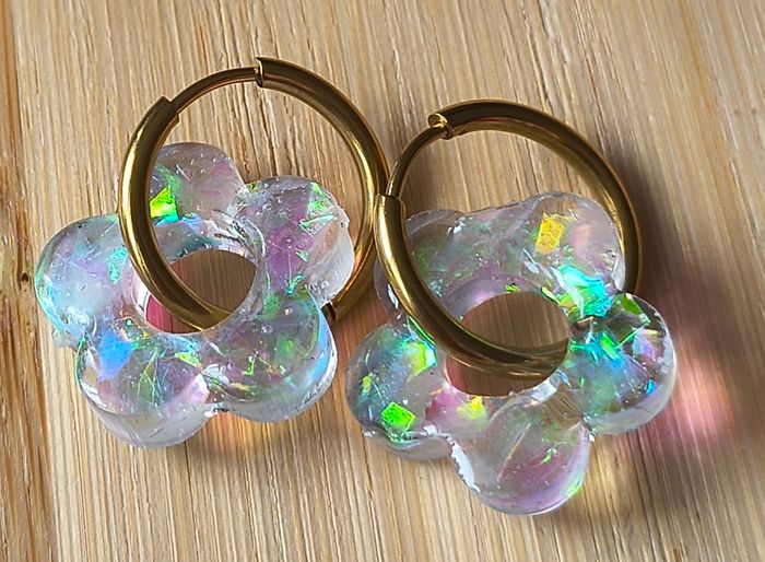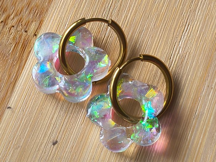 Boucles d'oreilles faites mains en résine Vendues avec créoles Idéal pour offrir