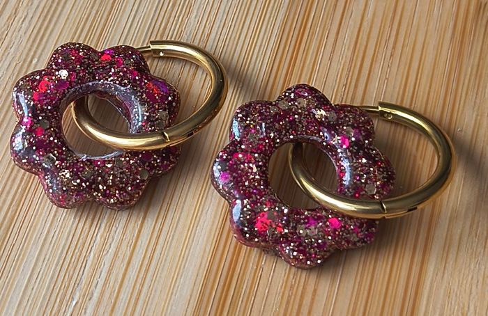 Boucles d'oreilles faites mains en résine Vendues avec créoles Idéal pour offrir