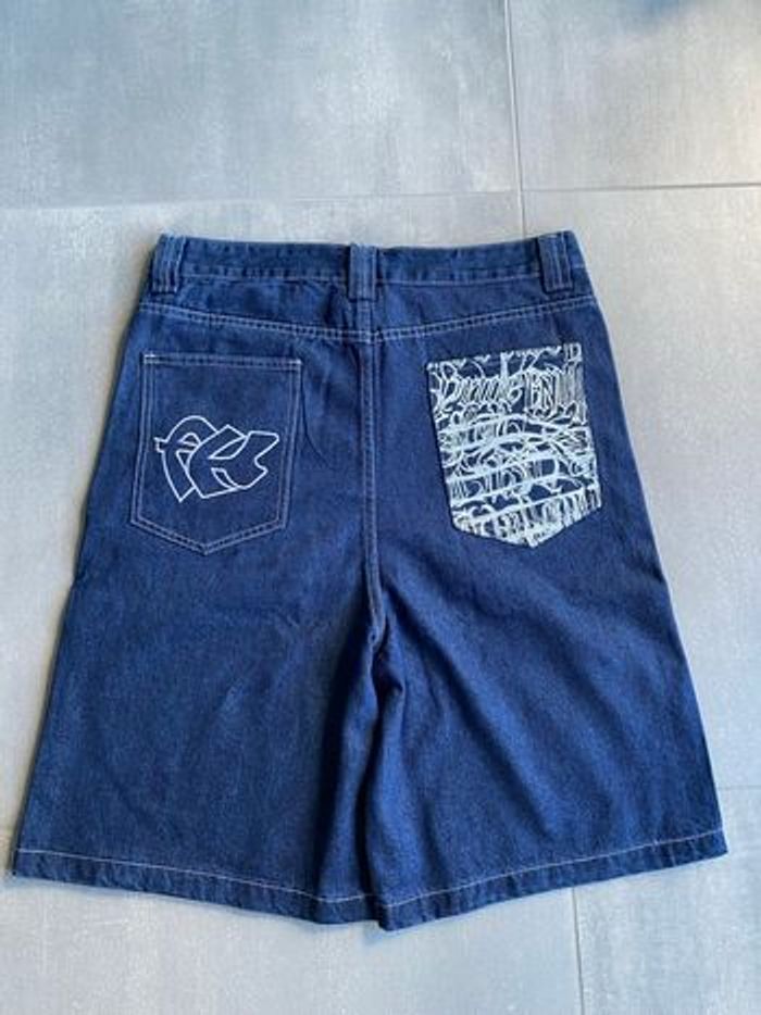Short / Jort Baggy large en jean avec motifs brodés - Taille M