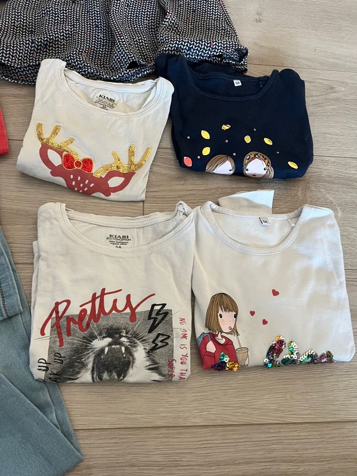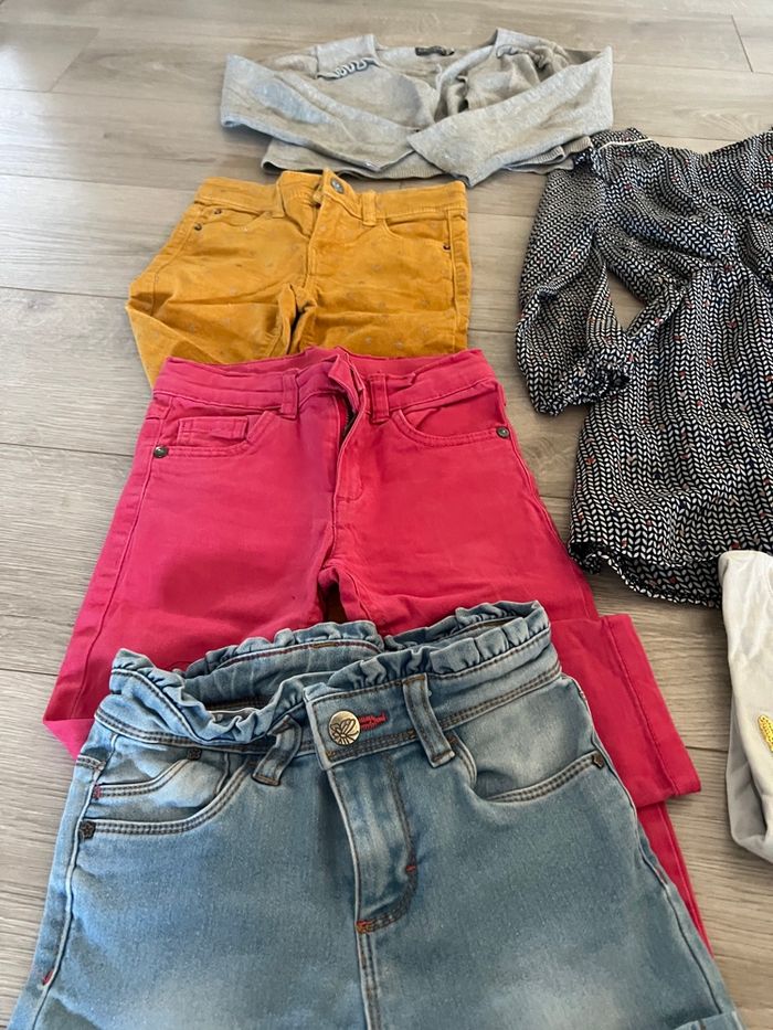 Lot vêtement 5 ans trois pantalons, une robe, quatre, T-shirts et un petit gilet Marque Gémo Kiabi, Lily Marelle et autre