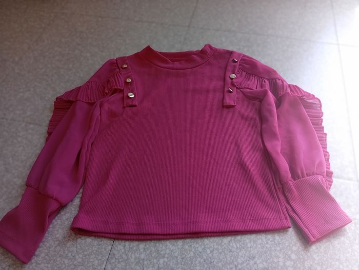 Pull laine ajouré, fille, 3 ans. Tricoté main.