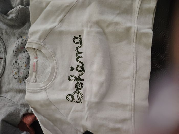Pull laine ajouré, fille, 3 ans. Tricoté main.