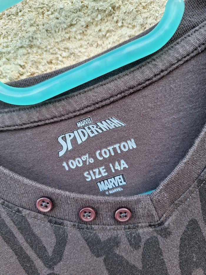 T-shirt à manches courtes à col V orné de 3 boutons décoratifs Marque Spiderman Taille 14 ans Couleur gris Motif araignée et écritures Matière 100% coton Très bon état 🚨 Réductions activées sur les lots 🚨 🟡 2 articles -5% 🟠 3 articles -10% 🔴 5 articles et plus - 15% #14ansgarconevaura76 #T-shirt #Spiderman #14ans