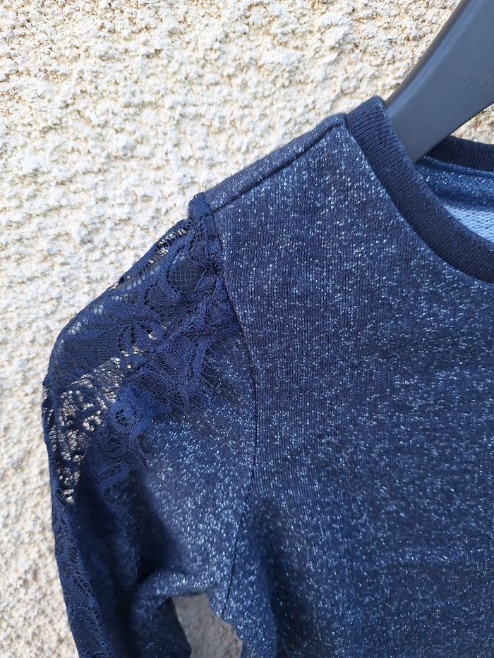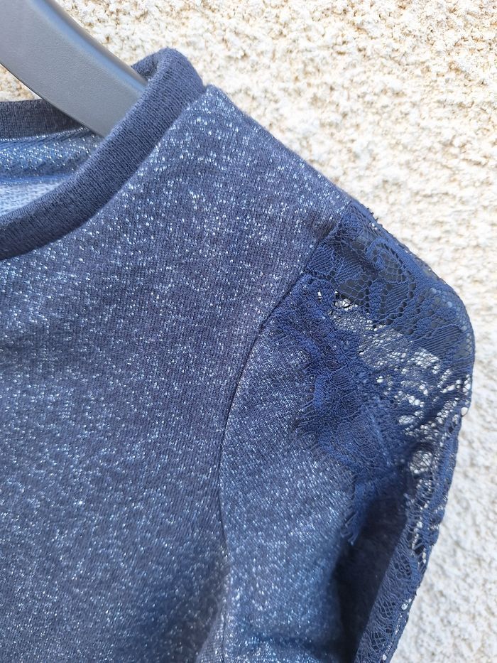 Haut à manches longues Marque Beckaro Taille 10 ans 140cm Matière 60% coton 33% polyester 7% fibres métalliques Couleur bleu marine, paillettes argentées et dorées Imprimé avec motif dentelle tout le long des bras Très bon état 🚨 Réductions activées sur les lots 🚨 🟡 2 articles -5% 🟠 3 articles -10% 🔴 5 articles et plus -15% #10ansfilleevaura76 #haut #pull #beckaro #10ans #140cm
