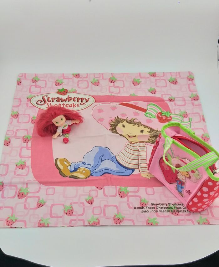 Poupée tête porcelaine robe à fleurs avec socle - État neuf.