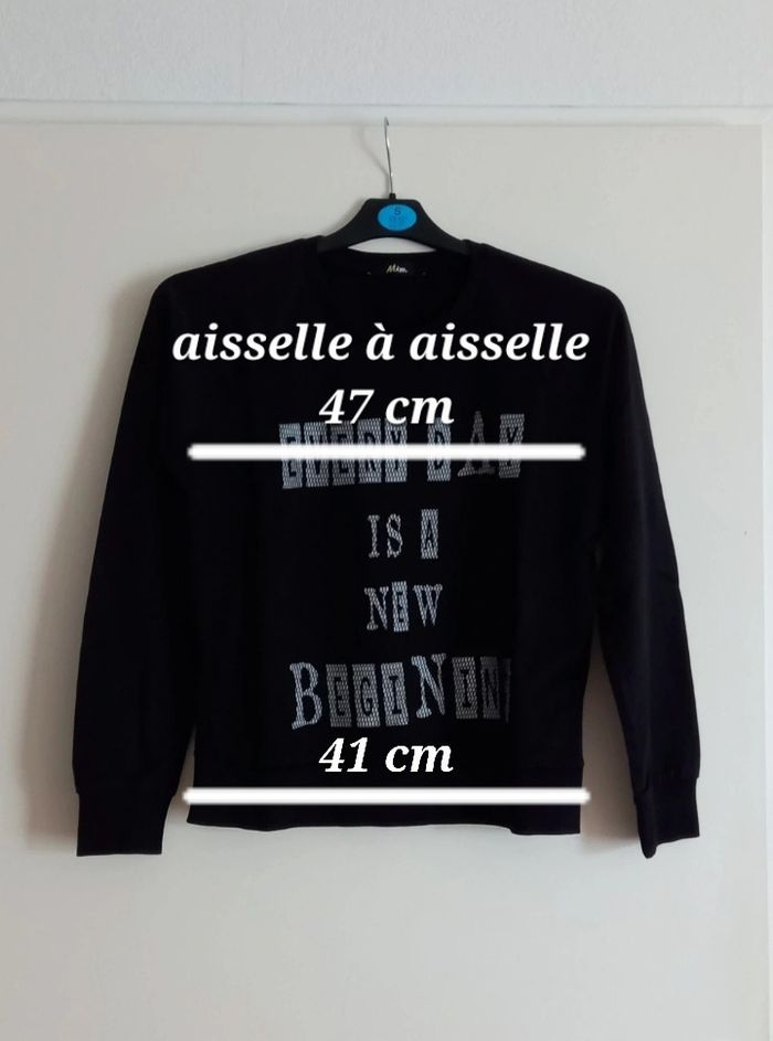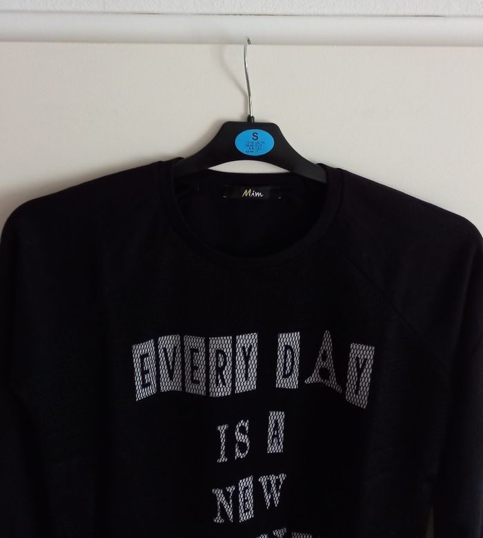 Sweat de couleur noir, doublé avec un voile en résille quadrillé sur le devant. Marque Mim. TAILLE 16 ANS. Sweat de très bonne qualité. Dimensions, voir photos.