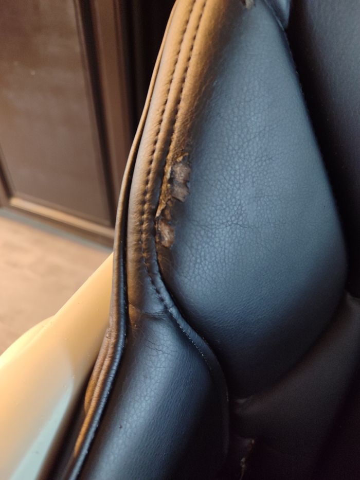 Chaise haute Assise cuir noir Petite usure sur le côté