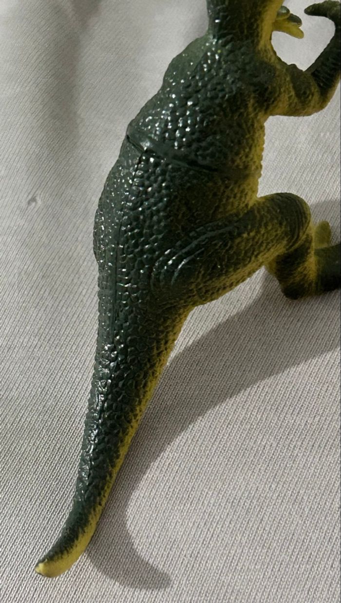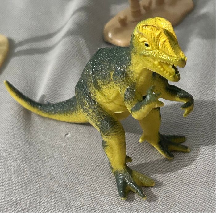 Je vends une figurine de dinosaures: Dilophosaurus - À l’échelle 1/32 - Année: 1997 - Matière: Plastique - Couleur: Vert foncé & Beige En très bon état 1€