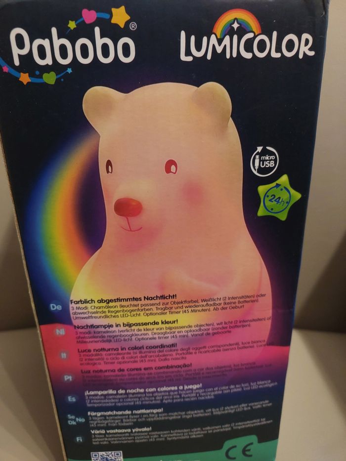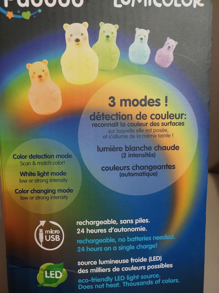 Bonjour Je vends cette veilleuse Marque pabobo Jamais servie Comme neuve Boite abîmée mais pas la veilleuse Complète