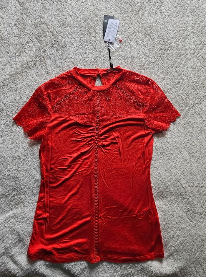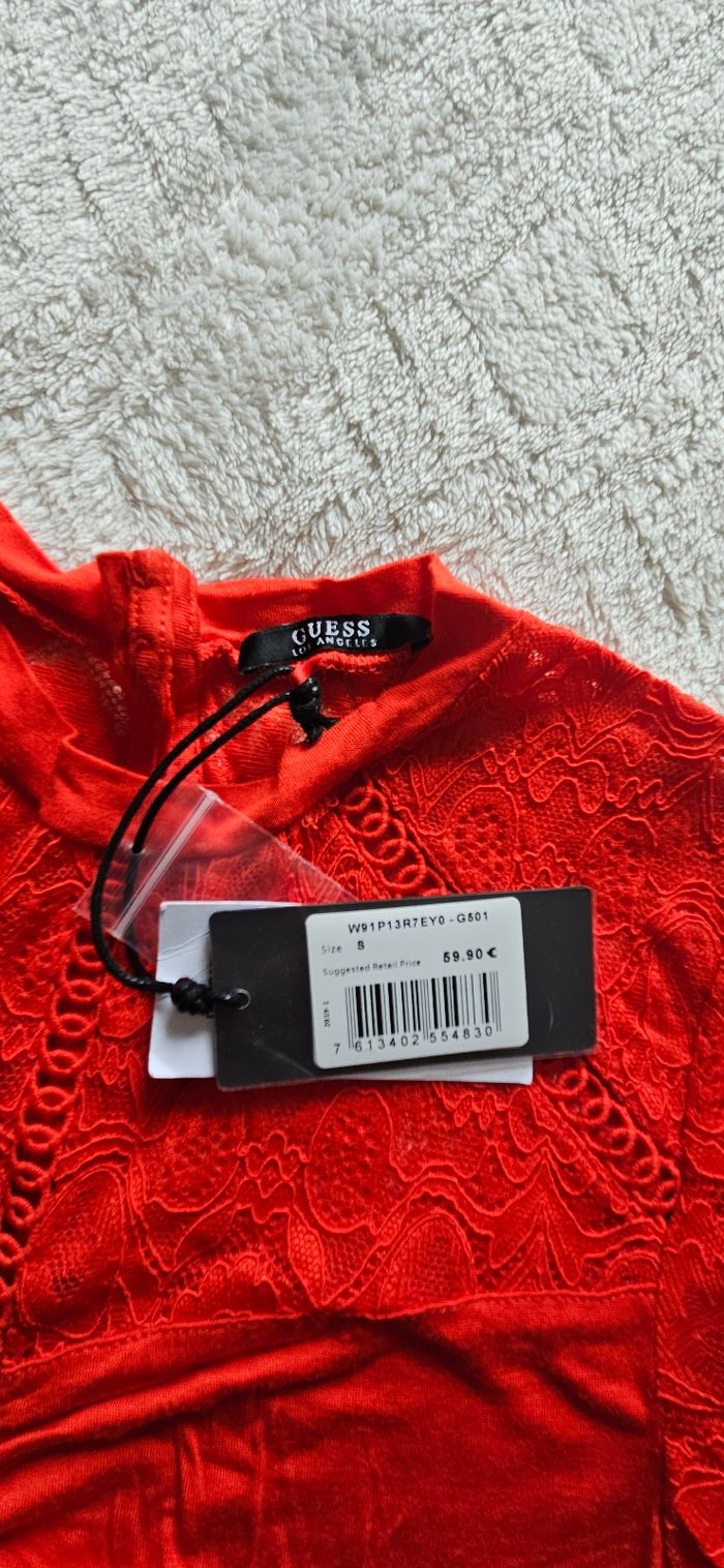 Tee-shirt Guess rouge avec dentelle. Taille S Jamais porté encore avec l'étiquette