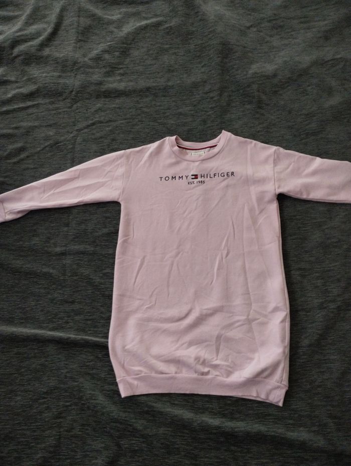 Robe pull Tommy Hilfiger Parfait pour la mi saison En très bon état peu porté Couleur rose pâle Prix négociable Taille 152 ce qui correspond a 12/13 ans Convient aussi a un XXS