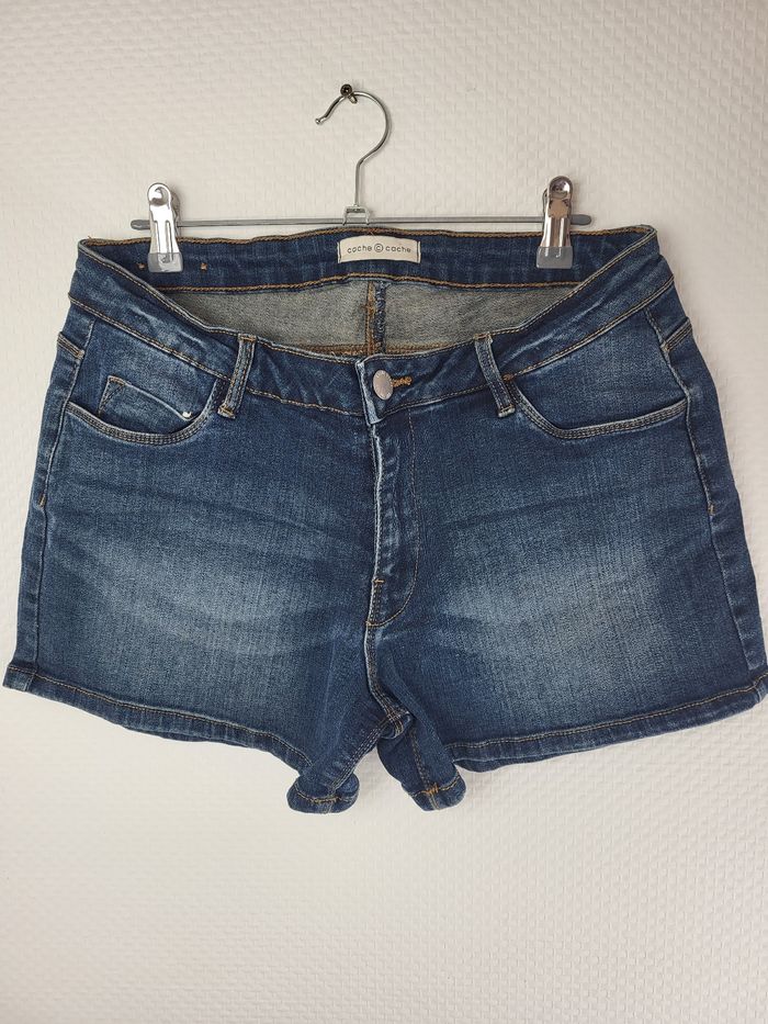 Description : Vends un short en denim de la marque CACHE CACHE. Taille 42 (XL). ​Le Style : Un bleu jean classique, indémodable et facile à accorder avec n'importe quel haut cet été. ​Les Détails : Coupe 5 poches traditionnelle. Fermeture par zip et bouton. Passants pour ceinture. Revers cousus au bas du short pour une finition soignée. ​Matière : Denim de coton avec une pointe d'élasthanne pour un confort optimal tout au long de la journée. ​État : Très bon état. ​📦 LIVRAISON EXPRESS : Envoi très rapide via Mondial Relay ou Relais Colis. Je dépose vos articles à la borne tous les jours ! ​✨ N'hésitez pas à regarder mes autres articles en taille 42 pour composer un lot et économiser sur les frais de port !