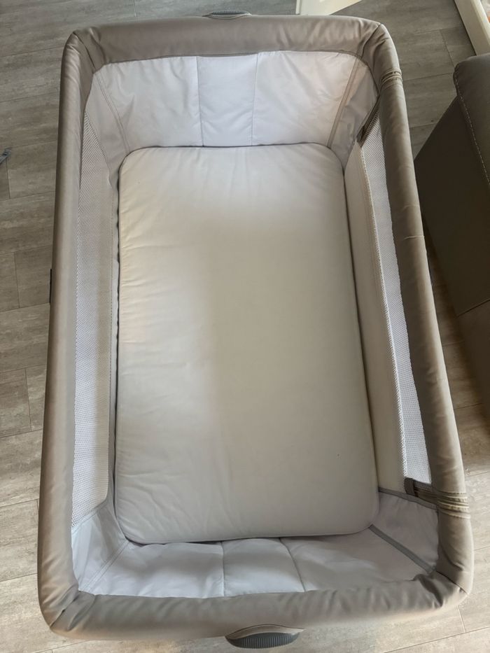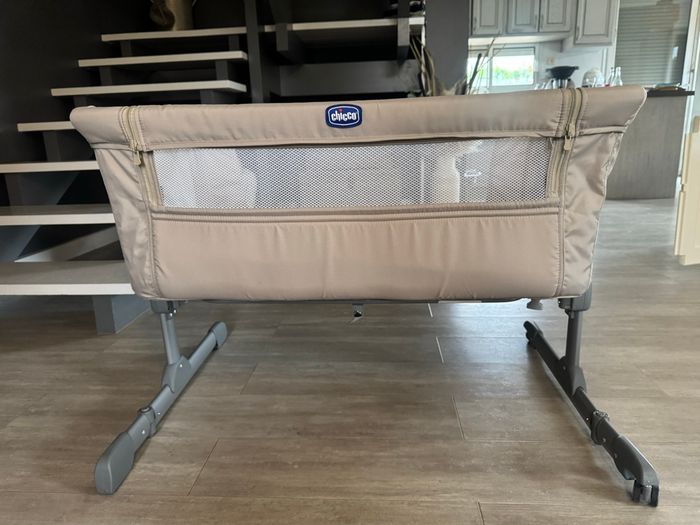 Berceau cododo Next2Me Essential Ainsi collé au lit parental, ce cododo sera verrouillé et ne pourra bouger grâce aux freins présents sur ses 2 roues. Par ailleurs, 2 des 4 extrémités des pieds peuvent se plier perpendiculairement s'il n'y a pas d'espace libre entre le sommier de votre lit et le sol. Léger et facilement déplaçable, le cododo pourra aussi être utilisé comme berceau indépendant, et pourra également se régler en hauteur. —— Berceau cododo Design élégant Conçu à 62% de polyester recyclé 2 roues avec freins Réglable en hauteur Utilisation indépendante possible Matelas épais de 5 cm IMPECCABLE TOUJOURS PROTÉGÉ PAR UNE ALÈSE et jamais taché Côtés filet aérés Structure légère Revêtement en tissu déhoussable Sac de transport inclus Marque Chicco en + 1 ALÈSE et 1 DRAP HOUSE 80€ Excellent état