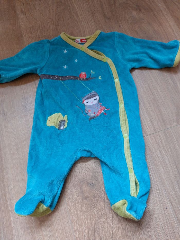 2 pyjamas velours 1 bleu et vert 1 blanc à motifs