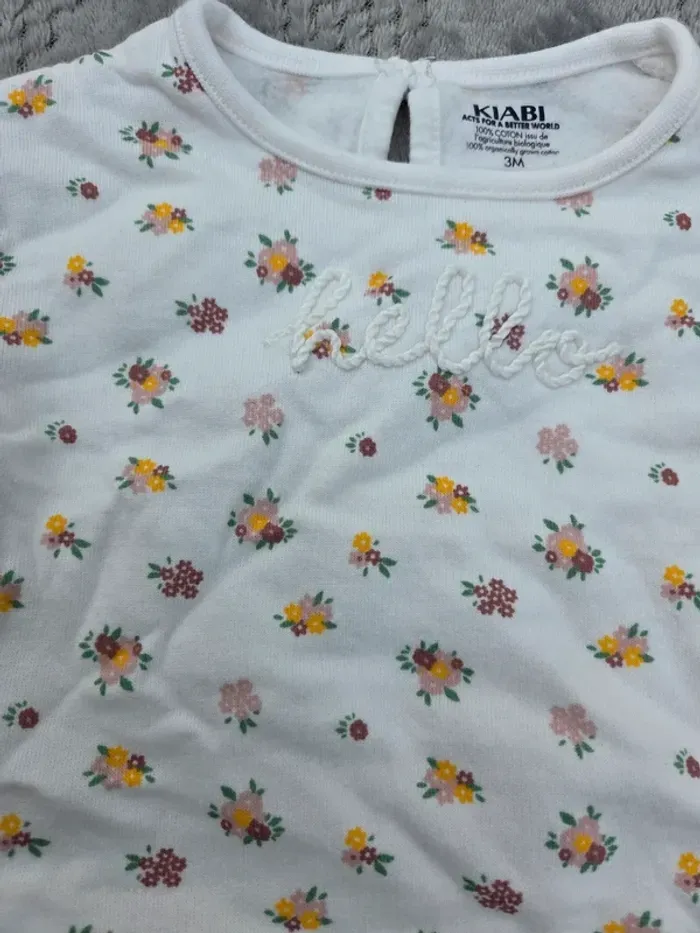 🎀 -> Petit sweat écriture Hello avec motifs fleurie 🎀 -> Kiabi 🎀 -> 3 mois ( 60 cm ) 🎀 -> 3€