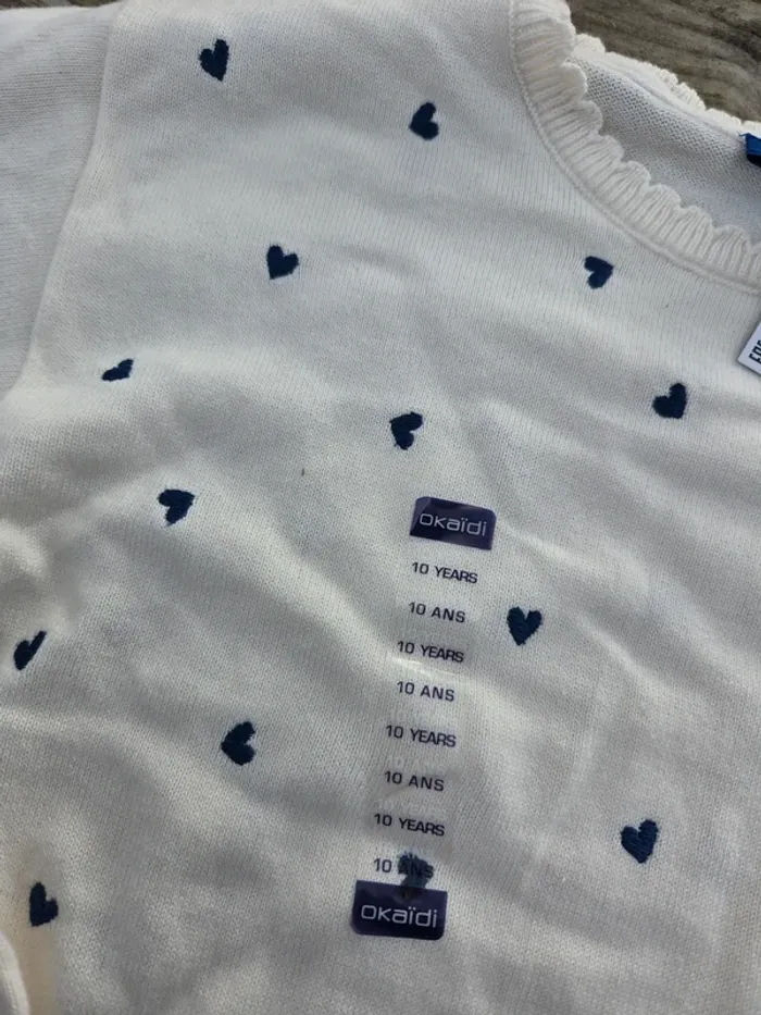 👧 -> Pull blanc avec coeur blanc 👧 -> Okaidi 👧 -> 10 ans 👧 -> 15 euros