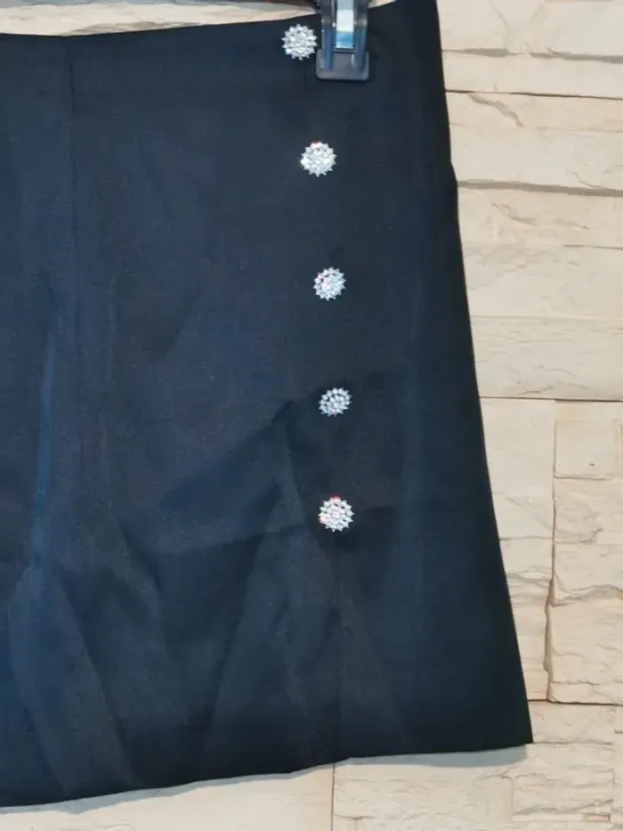 Échancrée sur le côté et jolis boutons strass. Neuve, on me l'a offerte mais beaucoup trop grand (perte de poids)
