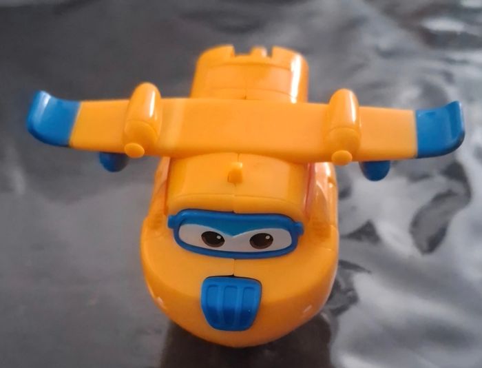 Lot de 4 avions super wings Super Wings Transform Hydravion Donnie (le jaune). Super Wings Transform-a-Bots Astra ( la blanche) Super Wings Jett Avion ( rouge casquette bleu). Super Wings