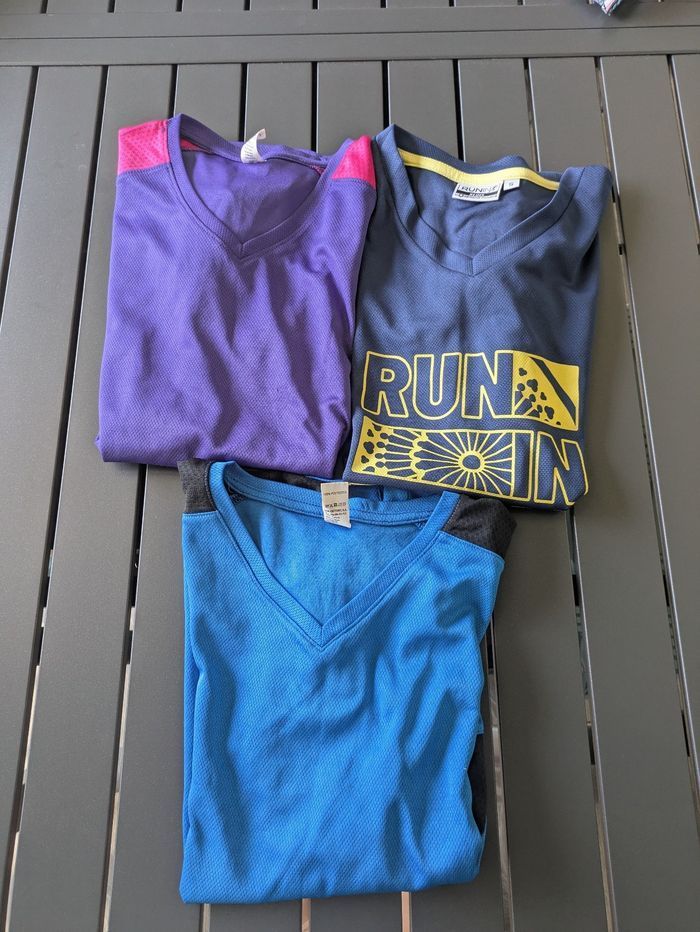 Bonjour, Je vends ce lot de 3 T shirts sport running femme taille S.