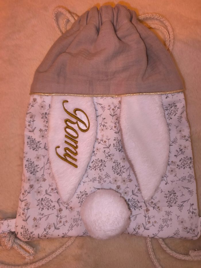 🐰 Sac pochon personnalisé – petit lapin tout doux 🐰 Craquez pour ce magnifique sac pochon personnalisé, version petit lapin, à la fois pratique et irrésistiblement mignon 🤍 Avec ses grandes oreilles toutes douces et sa petite queue en pompon, il accompagnera bébé et enfant partout avec tendresse 🥰 ✨ Parfait pour : • La crèche ou l’école • Le doudou et la tétine • Le change ou les petites affaires • Les sorties et week-ends 💛 Les + du modèle : • Prénom brodé avec soin (personnalisation unique) • Tissus doux et de qualité • Détails délicats : oreilles en tissu tout doux + pompon effet queue de lapin • Fermeture facile avec cordons 🌿 Pourquoi on l’adore ? ✔ Ultra mignon, effet coup de cœur assuré 🐇 ✔ Pratique au quotidien ✔ Unique avec le prénom de l’enfant ✔ Idée cadeau naissance parfaite 🎁 🎨 Modèle personnalisable (prénom + choix de tissus selon dispo)