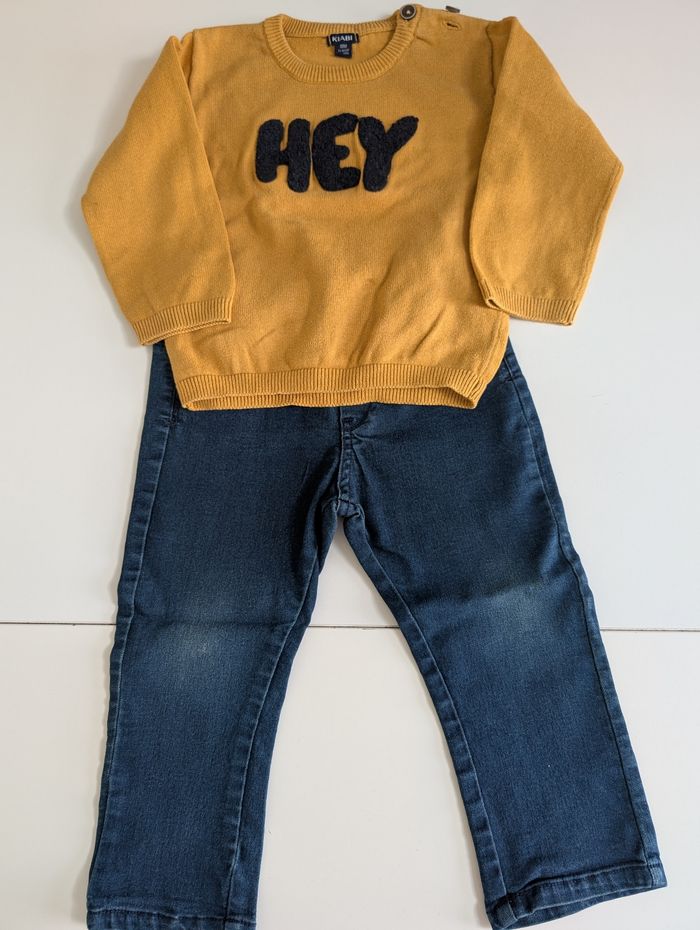 Ensemble deux pièces. Pull et jean, taille 18mois. En très bon état.