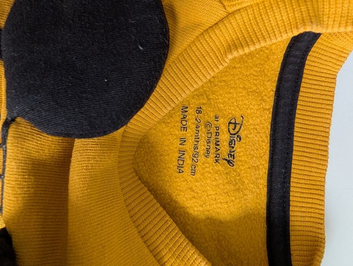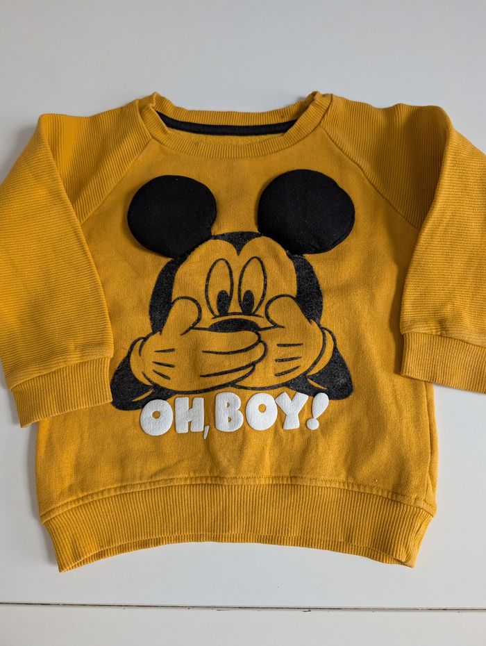 Ensemble jogging Mickey Pull jaune moutarde et pantalon noir. Taille 18/24 mois En très bon état