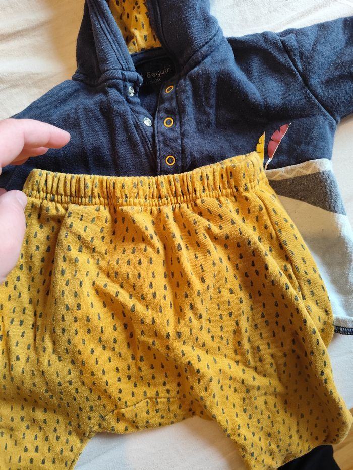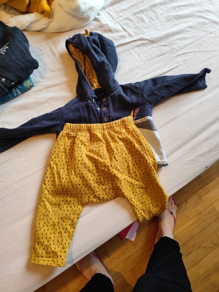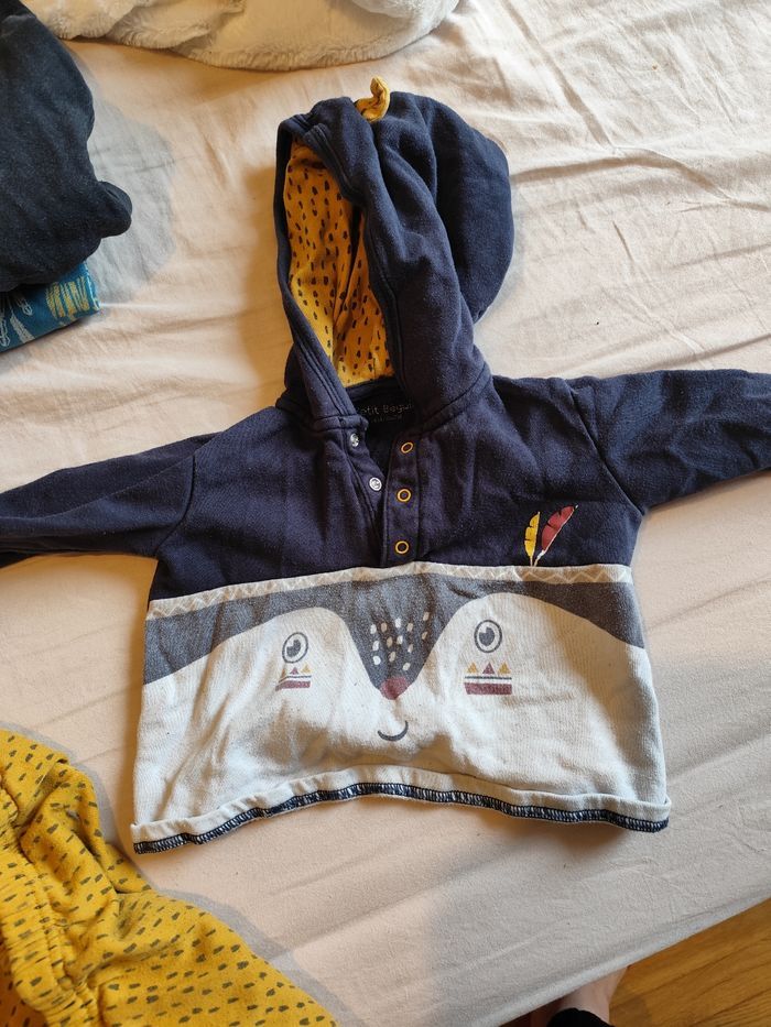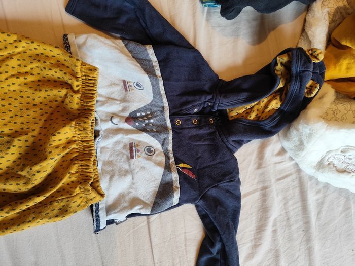 Vends ensemble 18 mois taille 86 cm Marque petit beguin Défauts: bouloche légèrement et flocage qui s'efface Bon état général