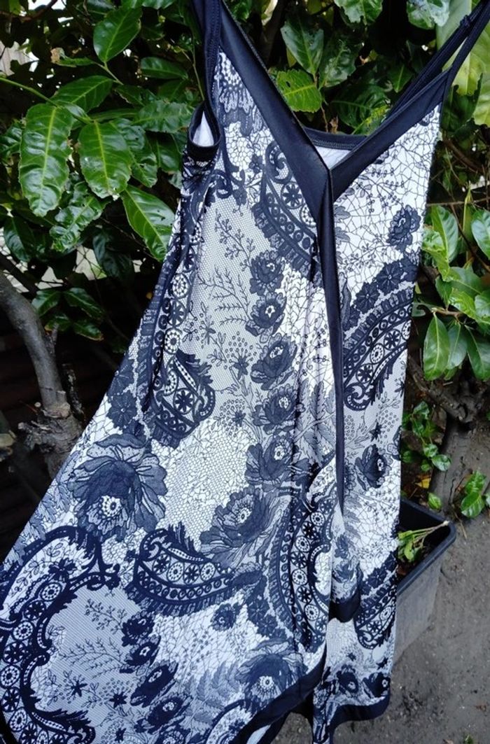 Très belle robe d'été très légère, décolleté en V, les finitions du bas partent en pointes, très beau motifs style bandanas, taille 36 va aussi a un 38, un peu élasthanne, excellent état, peu portée