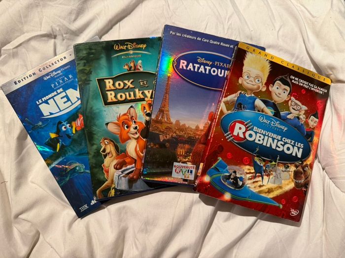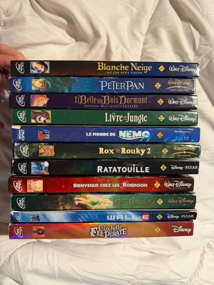 DVD Disney numéroté avec fourreau 3.50 l'unité. Certains DVD peuvent présenter des imperfections sur les pochettes ou des rayures ou trace de doigt sur les disques n'empêche pas le fonctionnement n'hésitez pas à me contacter