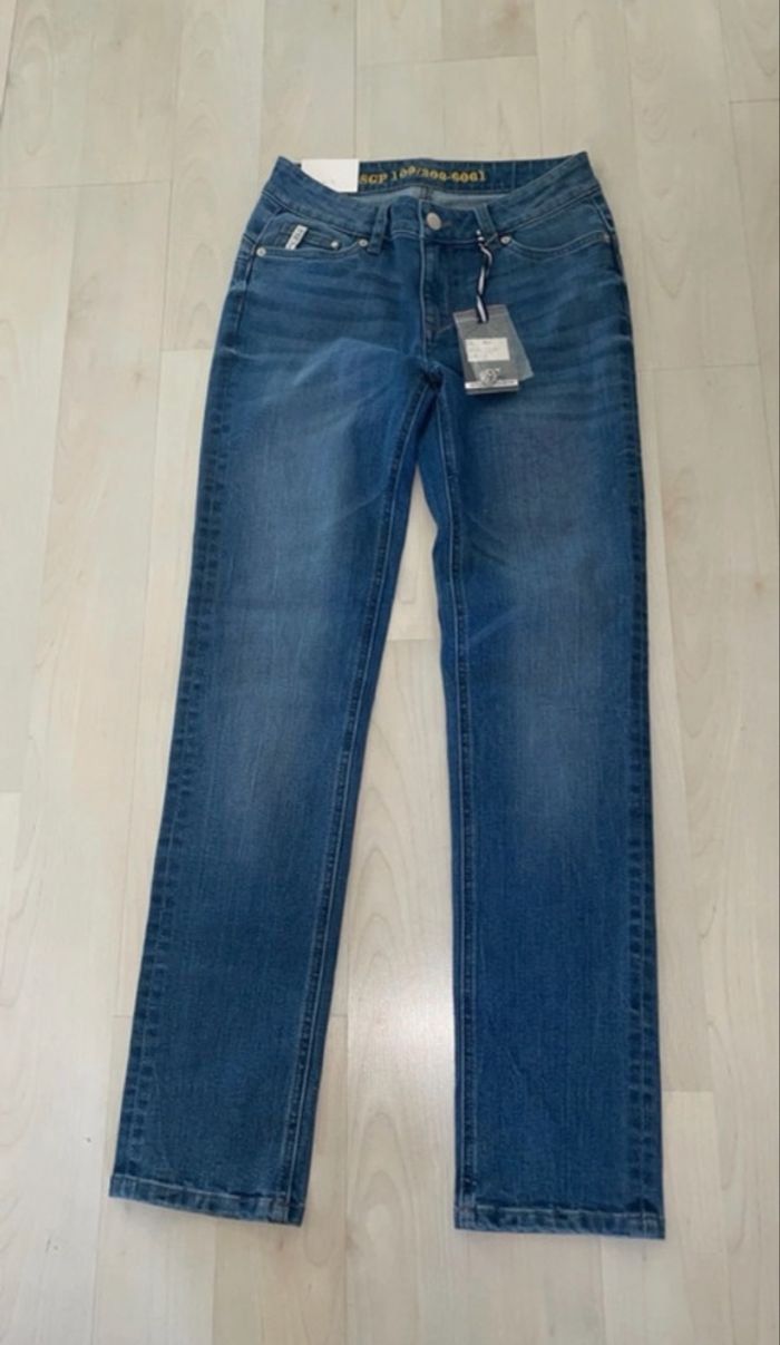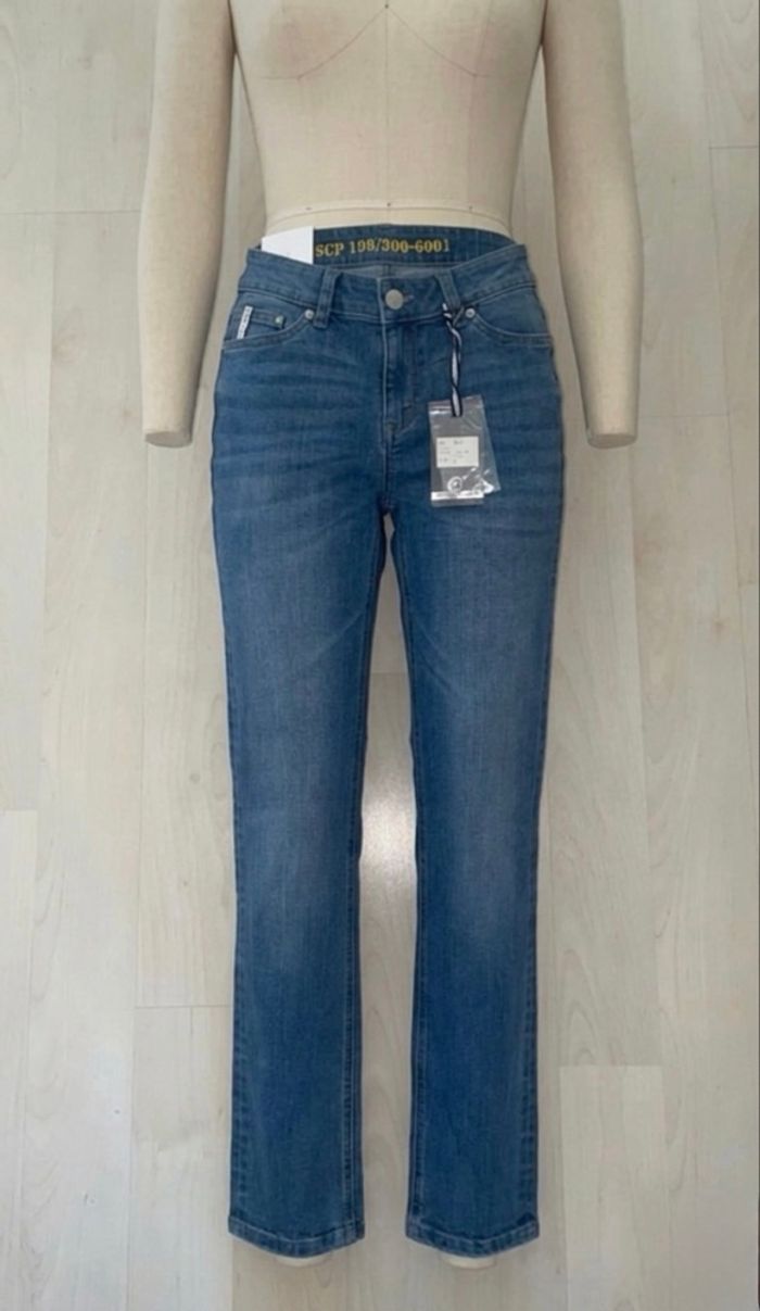 Jean femme Denim taille 36 avec rehausse pour boucle ceinture neuf.