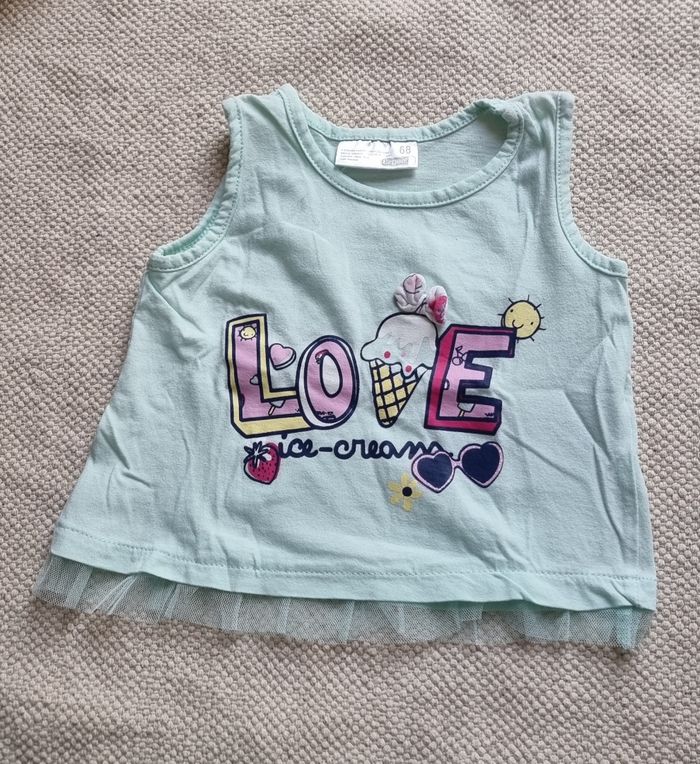 🛍 Débardeur 🎨 Vert menthe/Turquoise avec motifs multicolores 📏 68/ 6 mois 🏷 Ergee ✔️ Très bon état
