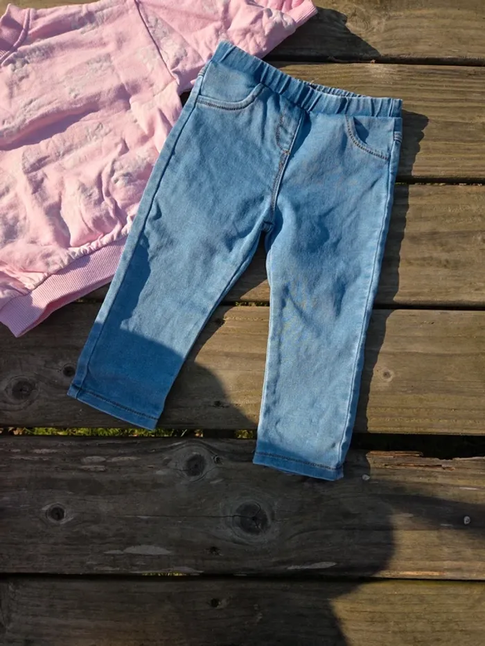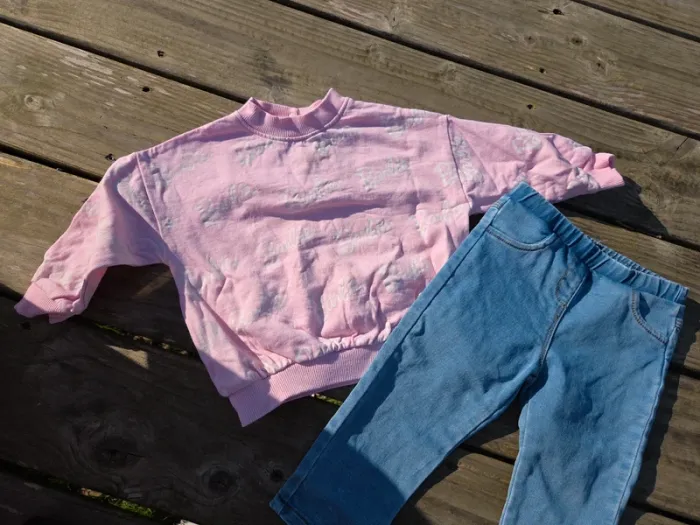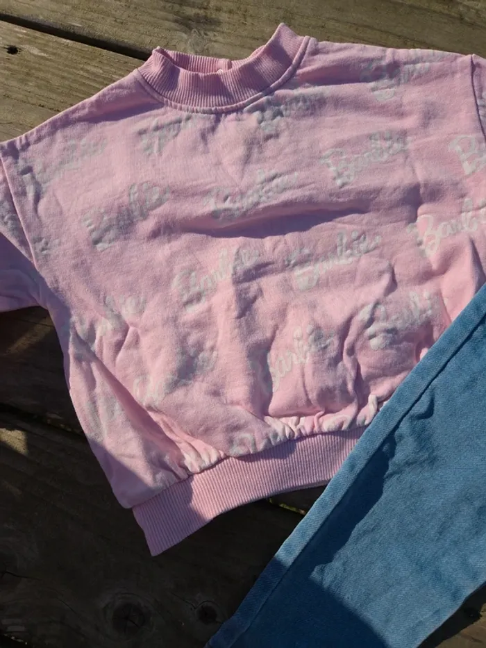 🎀 -> Ensemble comprend un sweat rose barbie et un pantalon jean tregging 🎀 -> Kiabi / Barbie 🎀 -> 18 mois ( 82 cm ) pour le sweat et 18 mois ( 86 cm ) pantalon 🎀 8 euros