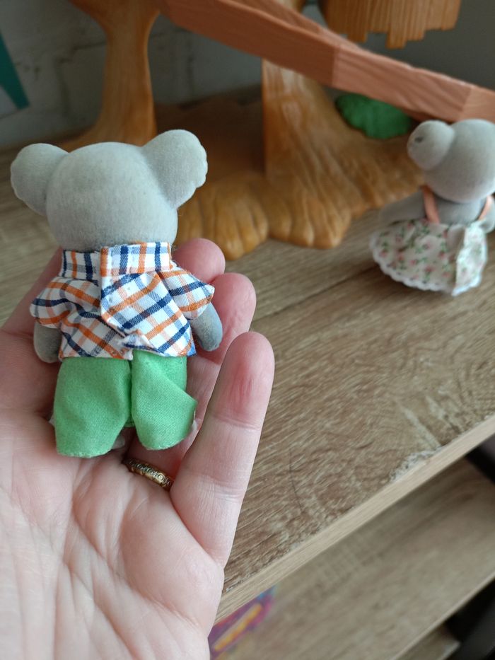 Cabane en excellent état manque juste un buisson d arbre en haut mais pas gênant J ai ajouter la famille koala le papa la maman et la petite fille et j ai également ajouté bébé écureuil sur la bûche ils sont en très bon état mise a part le papa où il y a eu du feutre et en voulant le nettoyer j ai un peu enlever la feutrine a sa main mais pas gênant 👍 J envoi mes colis avec soins bulle et cartons solide