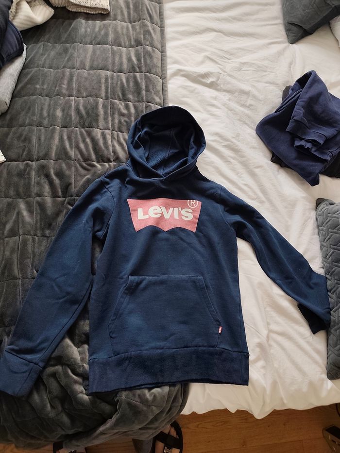 Je vends ce haut de jogging pour enfant de 10 ans de la marque Levi's. - Type de produit : Haut de jogging - Marque : Levi's - Taille : 10 ans - Sports/Loisirs : Autres État satisfaisant, ni trou ni tache. 2 poches a l'avant. Capuche. N'hésitez pas à me contacter pour plus d'informations.