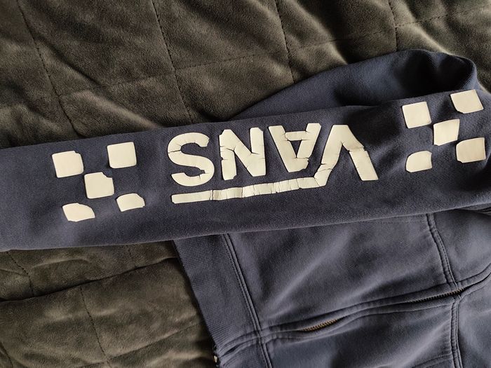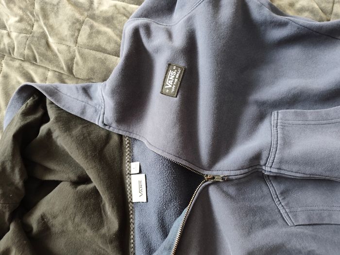 Je vends ce pull à capuche Vans bleu marine, parfait pour les jeunes garçons qui aiment le style urbain et décontracté. Bien que mentionné taille L c'est plutôt du 11 ans Épaule a épaules : 47.5 cm Épaule jusque bas pull : 61 cm - Type de produit : Pull à capuche - Marque : Vans - Univers : Enfant garçon - Taille : 11 ans / 146 cm - Couleur : Bleu - Caractéristiques : Capuche, Fermeture éclair, Poches latérales, Logo Vans imprimé ( un peu abîmé voir photo). Sans trou ou tache. N'hésitez pas à me contacter pour plus d'informations ou de photos.
