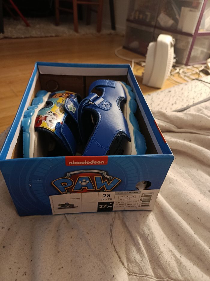 Bonjour je vends une paire de sandalettes taille 30 Pat patrouille Quand on marche avec ça fait de la lumière 😊😊😊