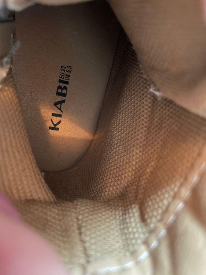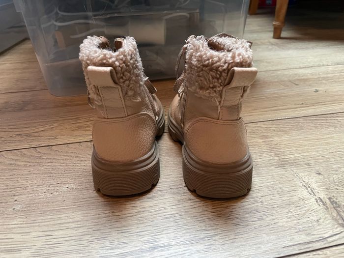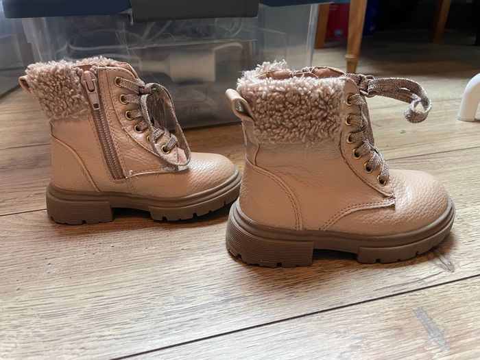 Bottine beige avec lacet et fermeture éclair sur le côté. En parfait état. Marque : Kiabi Taille : 22